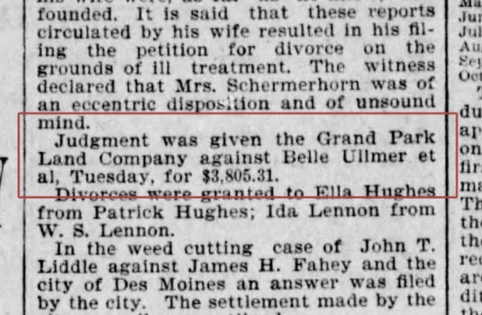 Previous Image Next Image 1901 Judgment against Belle Ullmer Des Moines Register; June 19, 1901 Des Moines Register; 19 Jun 1901